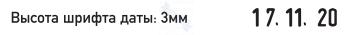 Высота шрифта даты: 3 мм. Месяц: цифрами. Разделители: точки Корпус: металл, пластик.