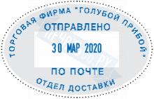 Размер поля: 55 х 35 мм (овал), высота шрифта даты: 3 мм. Штемпельная подушка: синяя.