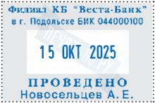 Размер поля: 45 х 30 мм, высота шрифта даты: 4 мм. Штемпельная подушка: синяя. Материал корпуса: металл, дерево.