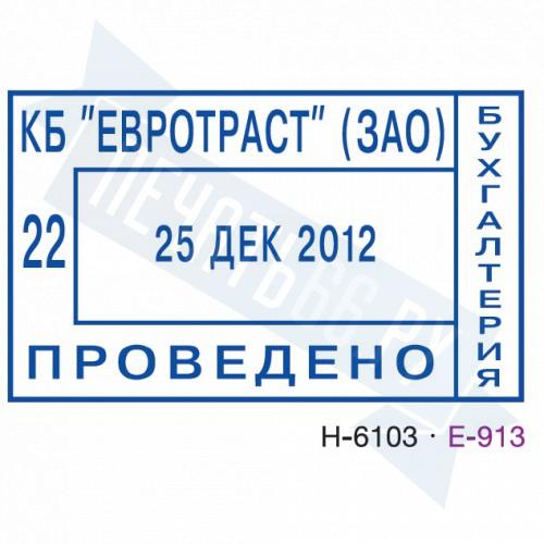 Размер поля: 50 х 30 мм. Штемпельная подушка: синяя.