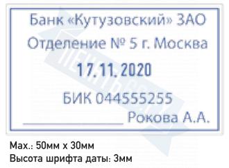 Поле: 50 х 30 мм, высота даты: 3 мм.