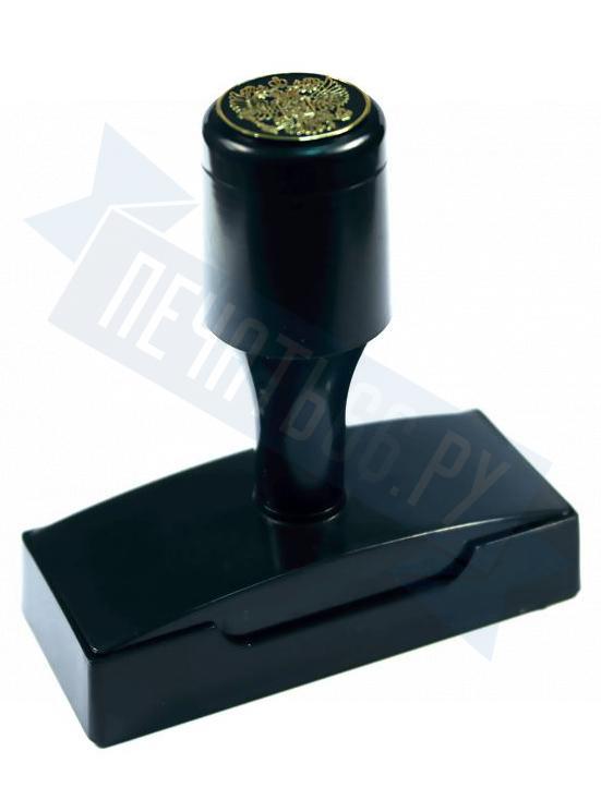 Ручная пластмассовая оснастка с крышкой для печати, штампа, факсимиле имеет клеевой слой для крепления клише печати.