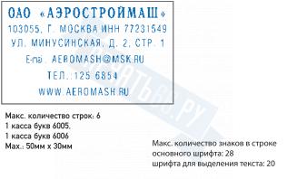 | Размер поля: 50 х 30 мм, строк 6, кол-во знаков 28/20 |
