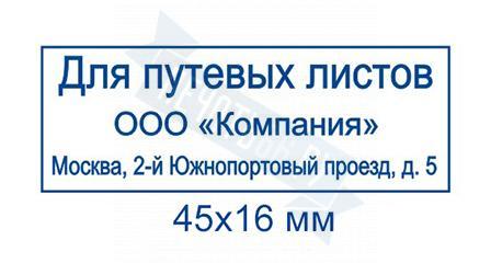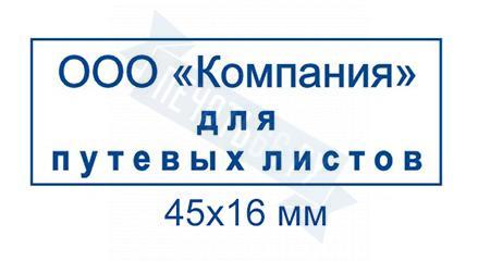 - Штамп для путевых листов на ручной пластиковой оснастке по цене 648 рублей и еще 3 вида штампов для путевых листов