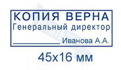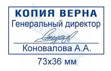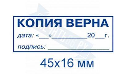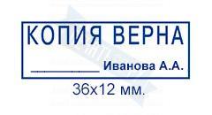 - Штамп копия верна на большой автоматической оснастке 75x38 по цене 1397 рублей и еще 8 видов штампов копия верна