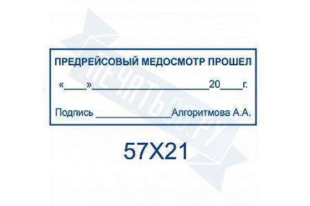 - Штамп предрейсового осмотра на ручной пластиковой оснастке по цене 648 рублей и еще 10 видов штампов предрейсового осмотра