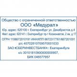 Штамп с реквизитами предприятия содержит в себе наименование организации, ИНН, ОГРН, КПП, расчетный и корреспондентский счет, и наименование банка, БИК банка, в котором счет обслуживается. Номера ОКПО и ОКВЭД.