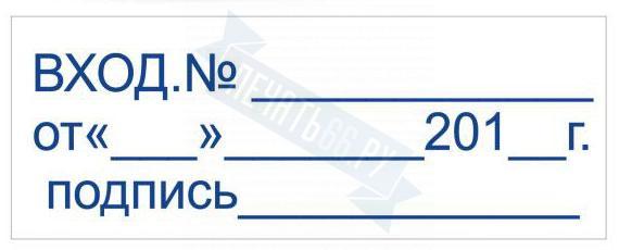 - Штамп ВХОД.№ ОТ____ДАТА __ ПОДПИСЬ___ на автоматической оснастке Trodat 3912 размером 47 х 18мм по цене 1098 рублей и еще 84 вида штампов со стандартными словами