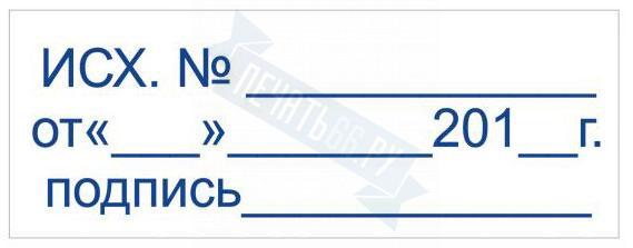 - Штамп ИСХ.№ ___ ОТ______ ДАТА______ ПОДПИСЬ___ на автоматической оснастке Trodat 3912 размером 47 х 18мм по цене 1098 рублей и еще 84 вида штампов со стандартными словами