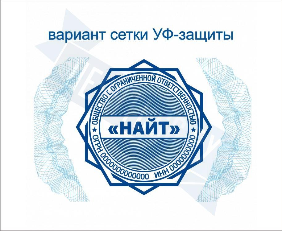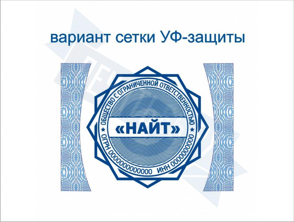 - Печати с невидимыми гильоширными метками, печать с защитой цербер по цене 2950 рублей и еще 7 видов